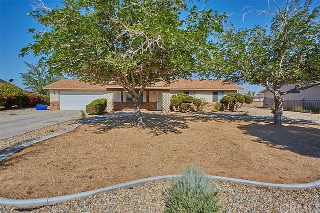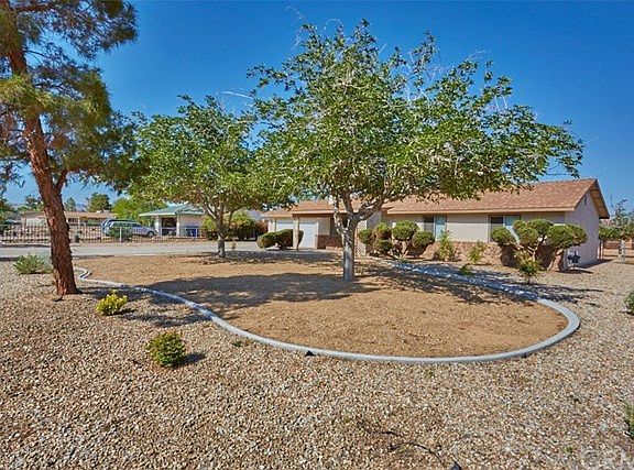 Charming Single Story Home in Apple Valley! Situated on almost a half an acre, this property features 3 bedrooms, 2 bathrooms, 1315 sq.ft., RV access and an Attached 2 Car Garage. This home has Cute curb appeal with mature trees, greenery and curbing. Greeted by Gorgeous laminate wood flooring and tile flooring that flows throughout connecting the living areas. The living room is accented by cathedral ceilings and a cozy fireplace, perfect for those desert evenings. Step into the kitchen with Beautiful Granite countertops, Breakfast Bar, and tons of cabinet space! Enjoy the covered patio, storage shed, and the enormous backyard offering plenty of room for your toys! Great location nearby shopping, entertainment and schools. This home is turn-key and ready for you to enjoy!
