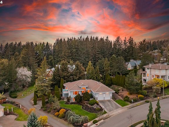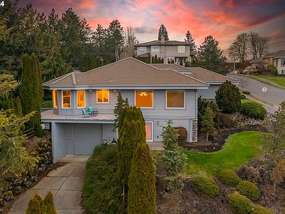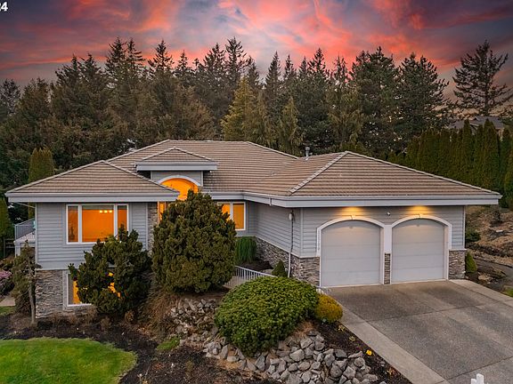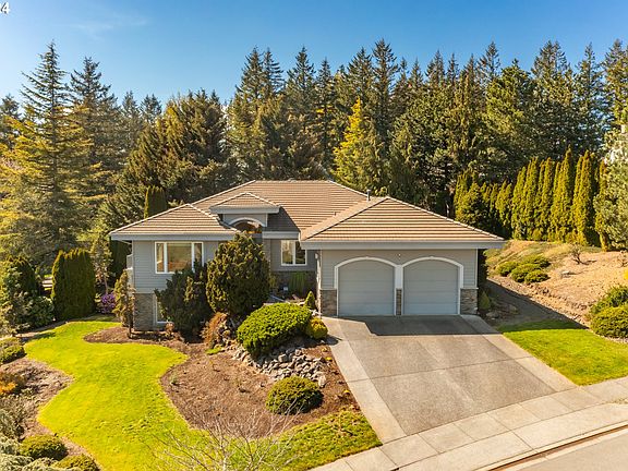 PRICE IMPROVEMENT! Breathtaking view of Mt. Hood from this exquisite steel-framed home boasting stunning views from nearly every window. Located in the coveted Highpointe neighborhood on a cul-de-sac street,custom-built home offers main level living with 3+ bedrooms, 4 bathrooms, tall doorways, and high ceilings. Chef's kitchen features SS appliances, center island, gas cooktop, granite counters, soft close drawers, under- cabinet lighting, a breakfast bar, and a cozy kitchen nook that flows into the open concept family room with gas fireplace. Entertain in the elegance of the formal living & dining areas with a breathtaking Mt. Hood and sweeping territorial view. The primary suite is on the main level with a private exterior door to back patio, new carpet, a walk- in closet, and smart Lutron Serena window shade. Primary bath has a soaking tub, shower with tall dual showerheads, and double vanity. Second bedroom offers built-ins, new carpet, and window seat. Laundry room and 2-car garage on main level. French doors open to the office (or possible 4th bedroom) with practical built-ins and closet. The expansive daylight basement with third bedroom is pre-plumbed for a wet bar or kitchenette, and has tons of room for a home theater, game room, kid's playroom, or multigenerational living room, with new paint and a 2nd gas fireplace. The bonus storage room is perfect for a wine cellar, cold storage, or workout space. And check out the attached 928 SqFt RV garage with storage for your RV, boat, or toys, or use as an incredible shop or gym space with 12 x 10 garage door! Updated smart features include Lutron dimming light switches and Ecobee thermostat. An Invisible Fence around the property will contain your pets, and the trailhead for Mt Scott Nature Trail is right across from the RV driveway! Too many other features to list! Convenient location to everything one would need; minutes from Trader Joes, New Seasons & more.