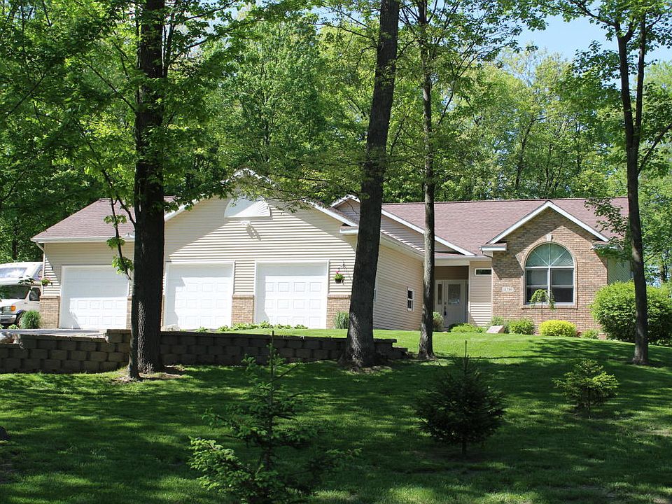 Beautiful Executive Home Situated on 1.82 Acres! Three Bedroom, 3 Full Bath Ranch on Finished Walkout! The Open Kitchen Boasts Corian Countertops, ALL Newer Appliances, Center Island. Convenient Main Floor Laundry With Newer Washer And Dryer. Large Master Suite With Whirlpool Tub and Walk In Shower. Finished Lower Level With Two Sliders to Yard, Large 3rd Bedroom and Full Bath. Updated Paint, Carpeting, and Vinyl Flooring. Many Many Updates....Newer 4" Well, Beautiful Aztec Decking on Back of Home, Slab for Your Motor Home, Underground Dog Fencing. Newer Water Softner. Three Stall Garage with Newer Cabinets. Pride of Ownership Shows in Every Inch Of This Home. Ready to Move In