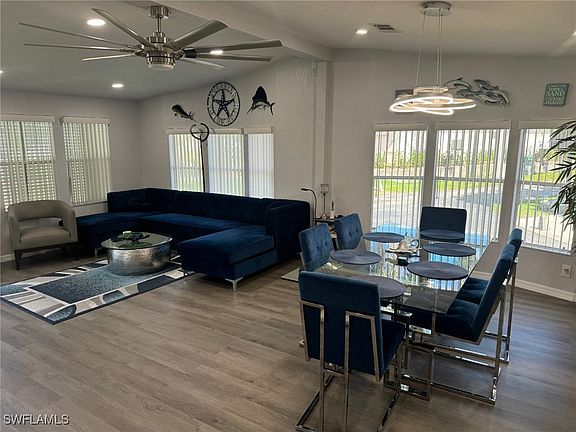 Living the dream in this almost completely remodeled beauty that's being offered Turn Key with everything you see in it included. The floor plan is wide open with wrap around and bay windows making the home light and bright. You'll love the beautifully decorated Living room, dining room and kitchen combo that makes a perfect great room. The home has all new flooring, new kitchen, both baths have been redone, new full size water heater and new duct work. The community has two pools, tennis courts, bocce ball and is gated with a very affordable association fee of only $166.47 per month. It's located off McGregor Blvd near Summerlin for easy access to Sanibel, Captiva and Fort Myers Beaches as well as great restaurants and shopping. This is not an age restricted community and owners are allowed to rent up to 6 months out of the year with a one month minimum lease term. The home is already leased from Jan. 1 to March 31, 2025 at a rate of $3,500 per month. The new buyer has to honor this lease, they are a repeat tenant from last year and were great tenants. The new buyer will also reap the benefit of the rental income.