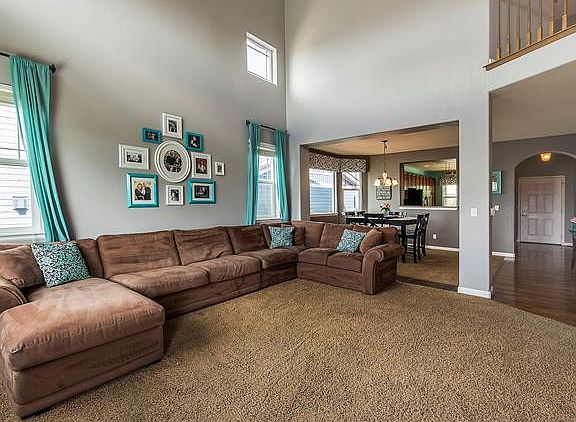 Immaculate Ryland Barrington Model home with gorgeous Front Range Views! Great floorplan offers large family/great room and den/study on the main level. Large open kitchen affords tons of cabinets as well as an eat-in table & bench & pot rack. Newly painted interior. Walk-out basement finished in 2014. Charming front porch and nice backyard deck for relaxing ... yard is fully fenced. For your convenience with storage & projects the bench and shelves in the garage are included.