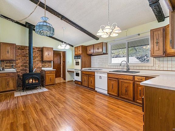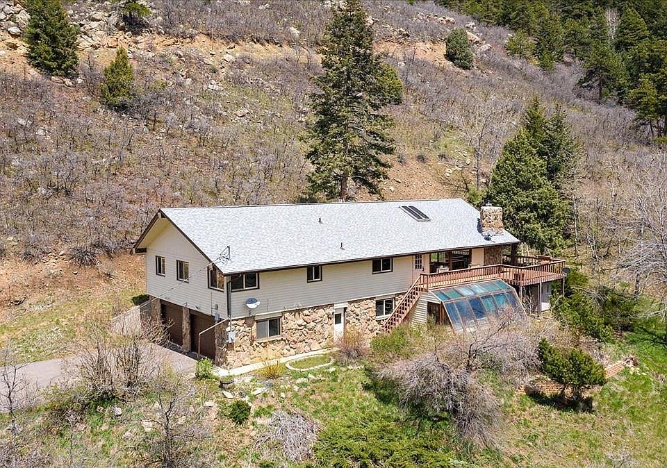 Opportunity knocks! First time on the market - original owner. This house is an excellent candidate for updating and for adding a solar power system as it features southern exposure, a newer roof and electric heating (there is also a propane heating source). Attached greenhouse provides passive solar warming and is a gardener's delight. Open great room design, 5 acres of privacy with gorgeous scrub oak and rock outcroppings. Incredible long distant views - watch the weather change minute by minute, watch fiery sunsets and serene moon sets over Sampson Mountain. The sunrises over Maxwell Hill light up the tops of the pine trees like candles in the forest and you'll love the clean air and deep blue Colorado skies against the tree covered hills. Listen to the silence and music of the wind in the pine trees. Many other features like metal siding, vinyl windows, ample storage, large garage, updated power service, 5 bedrooms all large enough for king sized beds and so much more.