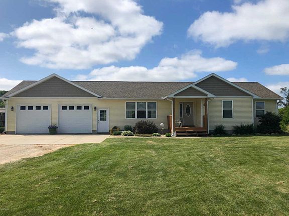 Beautifully maintained ranch in a peaceful country setting. 2.6 acres set outside of Belding. This open concept home is move in ready, has 3 bedrooms and 2 full bathrooms on the main level with a bonus, non conforming bedroom in the lower level and a half bath! You'll love the cathedral ceilings and neutral paint. The owner has added on to the home to give you even more useful space. Blueberry bushes out back are just starting to produce fruit!