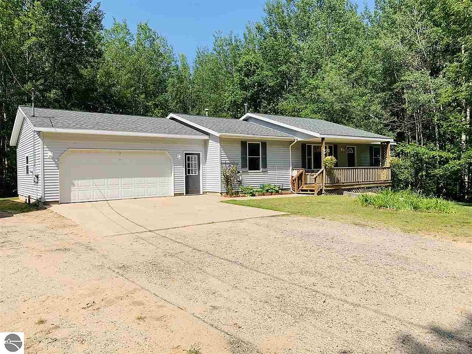 Nestled on 2.5 acres of hardwoods, Just outside of downtown Cadillac and minutes from the expressway! This 3 bedroom 2 bath home features a master suite with walk in closet, open concept floor plan, full basement with a legal bedroom and an office (otherwise unfinished) and is move in ready! Enjoy watching the hummingbirds and deer on your 12X16 covered back porch (built solid to be made into a 4 seasons room in desired). The home has an attached 2 car garage, 12x20 insulated barn with loft for extra storage! Central Air and a fire pit! Clean and move in ready, new flooring and paint!