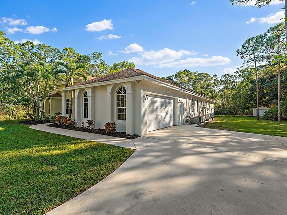 This very large CBS home was built in 2002 and is situated on a private, maturely landscaped 1.25 acre parcel. Upon entry you will be greeted by dramatically high ceilings, spacious rooms and an impressive 4,730 sf ft of living space. The split bedroom floor plan provides ample room for all to spread out, with 5 large bedrooms, 4.1 baths, and a den. Take full advantage of the south Florida lifestyle with an extra large lot and screened lanai around your private pool. Recent upgrades include; New roof January 2023, 2 new AC units January 2023, freshly painted inside and out! Realize all that Jupiter Farms has to offer within a short distance- Shopping, dining, Taylor Farmhouse, Riverbend Park, close proximity to I-95 and the Florida Turnpike.