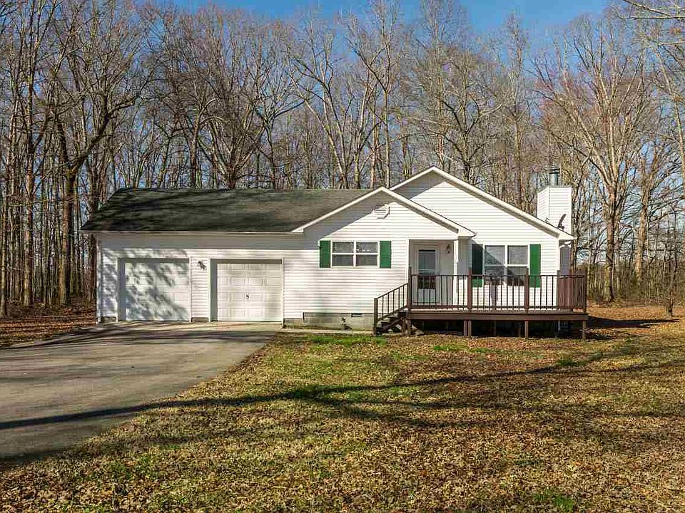 Three bedroom, two full bath, two car garage home situated on mostly wooded 2.95 acres. Complete privacy in back. Wildlife galore. Sit on your back porch and watch the deer pass by from neighboring land or just enjoy the light breeze passing through the trees while the squirrels play. Large front yard and spacious back yard limited only the by tree line. The house is comfortably situated off the highway and allows very little traffic noise inside.
