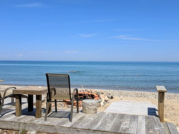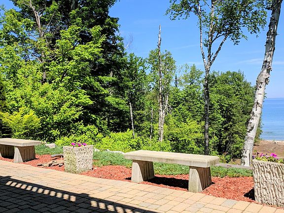 Custom built cedar log home overlooking 80' frontage on Lake Huron. The home has immaculate landscaping with stone retaining walls, brick paver patio and walk way and a staircase down the bluff edge to the lake. The seller has been adamant about maintaining the home and has recently repainted the interior, re-stained the exterior with Sikiens, resealed the wood floors and widened the path to the lake. The home has huge 24' vaulted T&G ceilings, a gas log fireplace with hand carved antique insert, ceramic tile in the baths and kitchen, solid wood doors and hardwood floors throughout. The deck on the main level is maintenance free and the covered porch on the lower level allows you a shaded area to kick back and enjoy the lake views, wildlife and passing freighters. See supplement.