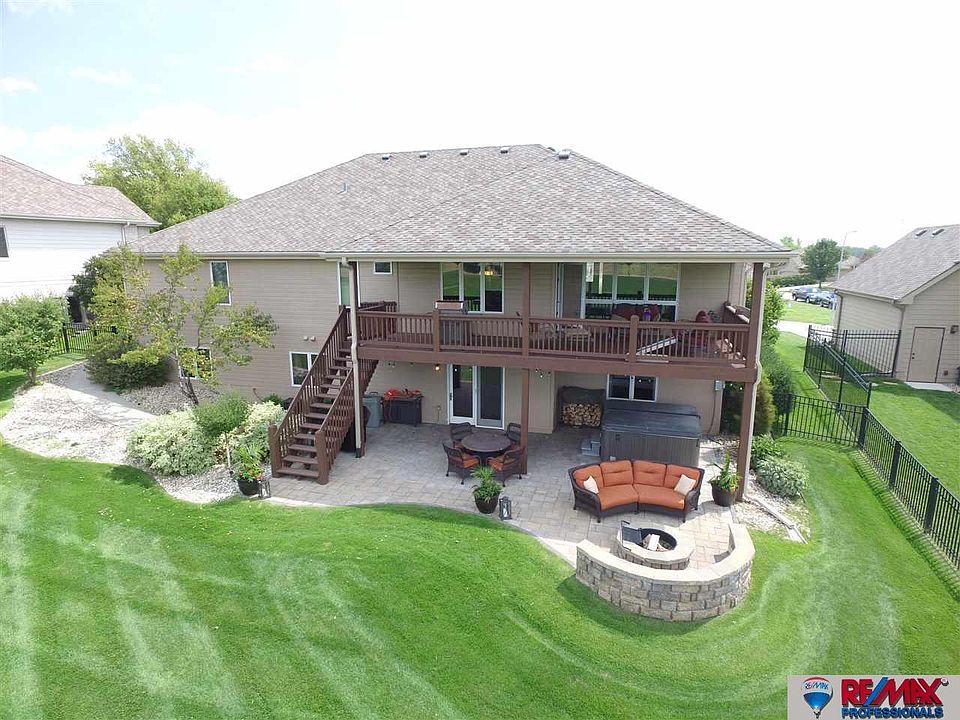 CONTRACT PENDING. This home has over 2000 sq ft & hardwood floors throughout open concept main floor. The main floor master suite boasts an expansive walk in closet & master bathroom. Convenient 2nd bedroom w/ 3/4 bath on main floor. Lower level completes home w/ a rec room & family room that walks out to a custom brick paver patio w/ hot tub & fire pit thats perfect for a fun or relaxation overlooking Hole 2 of The Players Club, Omaha's premier private 27 hole golf course. AMA