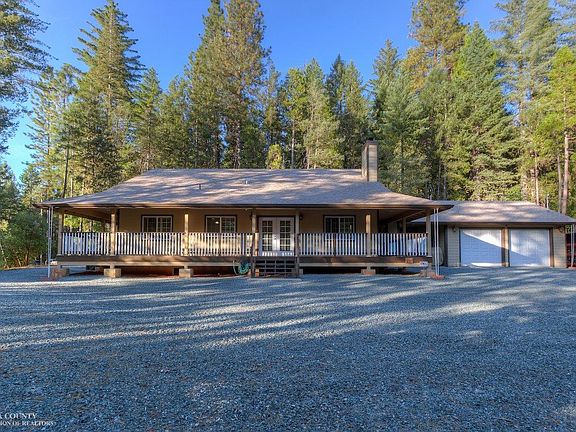 Dressed to impress! Here's an engaging ranch on 2.50 acres near beautiful Bullards Bar lake that showcases impeccable quality, style and attention to detail. The serene property was abandoned when the sellers purchased and finishing touches to new construction were completed in 2017, creating a sheltered mini estate with ample room for animals and agriculture. The distinctive custom contemporary with a wraparound deck was meticulously designed with comfort, convenience and easy care in mind. Highlights include a spacious country kitchen with stainless, quartz and hickory accents, security system, surround sound, exterior lighting, wiring for generator and spa and many other amenities too numerous to list. There's also a versatile garage/shop with heat and air, a bathroom, cabinets, work bench and stove. The peaceful land features outbuildings, enclosed storage and more. Experience refined rural living in a secluded setting with a handsome home that definitely makes a statement!