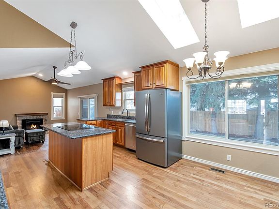 This beautiful updated home has three main floor bedrooms and two updated baths with granite, making it a perfect home for its new owner. The largest main bedroom features an updated private bath. The home has been recently updated with beautiful rich wood floorings and new paint. The kitchen has built in cabinets and beautiful granite over the sink and island! Front and back yards are well manicured and low maintenance. The basement has a beautiful bedroom with fireplace and ingress and egress window. Additionally, there is a large, hardwood dance floor or gymnasium, nice bathroom and oversized laundry room, all immaculate. Don't forget to check out the beautiful neighborhood! Bring your pickiest Buyers so they may make this beauty their next home!