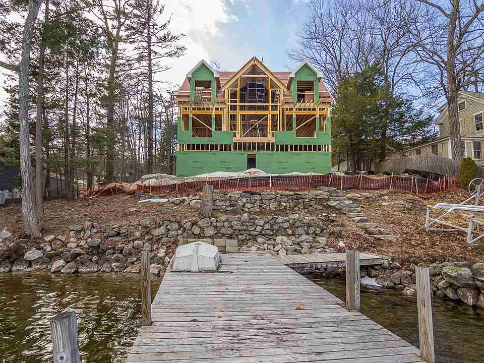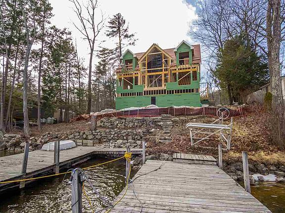 Currently under construction with completion date Summer 2018; plan ahead for future fun & vacations on the lake! Adirondack Lakehouse by one of the premier Lakes Region builders; C & A Exquisite Homes. Location is perfect for year round living on a paved road with easy access from main road & minutes to Alton Bay & Gunstock Ski area. Easy commute to the Seacoast & Concord. In a great neighborhood on a large waterfront lot with a huge grandfathered U-shaped permanent dock & sandy bottom for swimming. Surprisingly private from the neighbors with great views. The proposed house will be 3000sqft to 4500sqft, have 4 bedrooms, 4-5 bathrooms, stone fireplace in living area, hardwood floors, state of the art kitchen, 1st floor master suite and other en-suite bedrooms w/balconies, decking from the main level and so much more!! There is an existing 24x46 detached 4 bay garage plus the new home will have an attached 3 car garage. Plenty of parking for all the toys & custom cars.