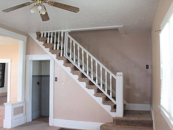 This 3 bedroom, Story and a half house would be a great affordable family home with room for building sweat equity by painting, flooring and providing some cosmetic improvements! The extra lot to the east gives the property a spacious yard and the nice open porch is a good spot for enjoying the end of your day! On the main floor you'll find a bedroom, bright living room, dining room with open staircase , full bath, and kitchen. Upstairs has 2 spacious bedrooms and a gaming room. The basement is full and unfinished with lots of potential. Located close to a convenience store, fast food and just a hop onto the highway, this central spot makes it easy to get anywhere in town quickly.