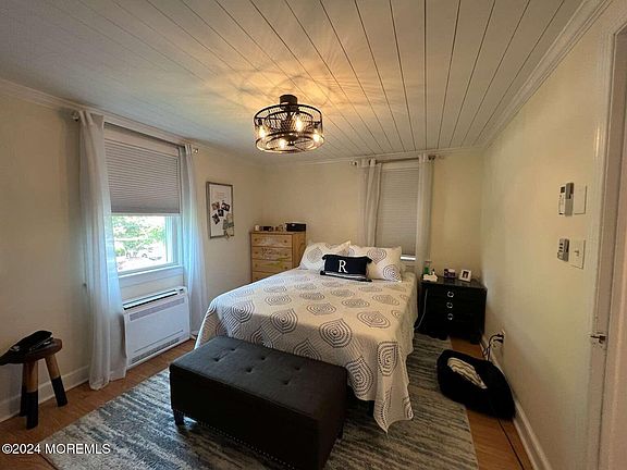 This new renovated 2nd floor apartment is state of the art. Back and front private entrances. Outdoor balcony large enough to have a party and your own driveway parking spot on the best street 3 blocks from downtown Red Bank. Navy blue new kitchen cabinets; all new appliances, washer & dryer, hardwood floors throughout. Corner apartment with plenty of sun lite. Large bedroom & bathroom. LR over looks professionally landscaped large yard with gardens. Unfortunately, no pets allowed.