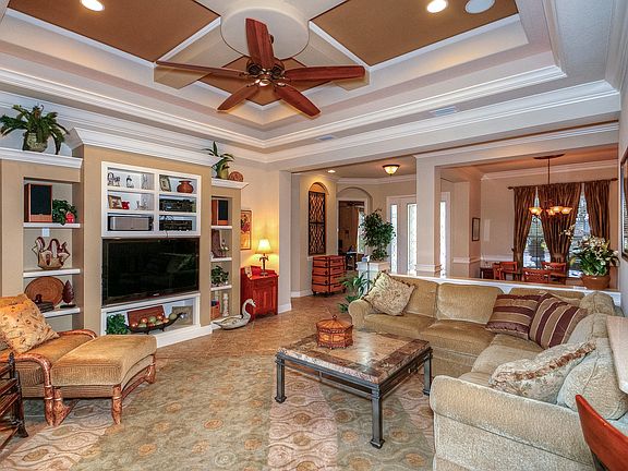 - Interior Features: Ceiling Fans(s), Eating Space In Kitchen, High Ceiling(s), Master Bedroom Downstairs, Split Bedroom, Stone Counters, Crown Molding, Solid Wood Cabinets, Window Treatments, Vaulted Ceiling(s), Tray Ceiling(s)