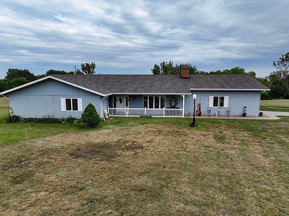 The well-maintained country property has a lot to offer the new owner. The ranch-style home consists of 3 bedrooms, three bathrooms, a nice-sized laundry room, and an office. It has an open concept living and kitchen area with vaulted ceilings and a brick fireplace. There are three outbuildings with concrete floors. One of the buildings has a finished hang-out area with a kitchen/dining area that is heated and cooled. The yard around the house and building is loaded with beautiful landscaping and flowers. The 20 acres behind the house are close to the Republican River and have plenty of cover to be a hunting spot or maybe fenced to run horses. This is a must-see if you are looking for your own country home and some acreage! Call today to take your private tour of this beautiful property.