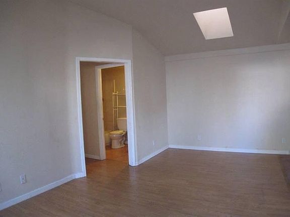 Clean 3BR/2BA duplex with a 1-car attached garage. It was updated with cherry kitchen cabinets and granite counters. It comes with a refrigerator, gas range and washer/dryer. The bedrooms are carpeted, the living area has laminate and the kitchen and bathrooms are tiled. The bathrooms, both with shower over tub, have also been updated. Skylights in the Living Room and hallway bring in the light. It has a private backyard with a patio and a fig tree. 1 year lease