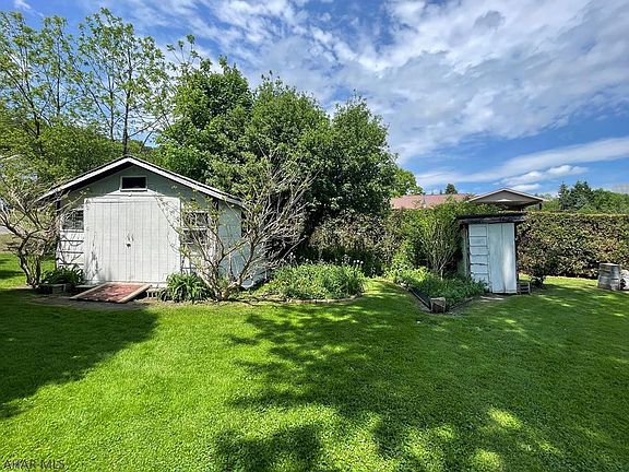 This property is much larger than it looks. Renovated mud room and full bath on first floor. Spacious kitchen with plenty of cabinets and counters, large enough to accommodate a table/chairs, dining area and living room complete the first floor. Upstairs there are three nice sized bedrooms with plenty of storage space. One bedroom is captive. Also half bath is in a bedroom. Newer electrical, and brand new hot water heater. New windows in mud/dining/living rooms, purchased replacement windows for kitchen just need installed by the buyer. Large corner lot. Shed with electricity and an official outhouse. Shield your car from the weather in the carport. Covered porch and covered patio for relaxing. Beautiful garden areas. Call today!