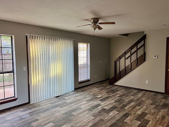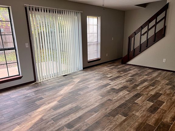 Freshly painted and new flooring throughout unit. Bathrooms updated with subway tile. Washer and dryer hookups. 2 car garage. Large yard. Fantastic location for commuting anywhere in OKC metro. Renter is responsible for water, gas and electric. Renter responsible for maintaining lawn.
