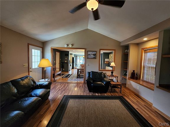 Welcome to this beautifully updated home! You will fall in love with the gorgeously renovated Kitchen which includes antique white, craftsman, easy-close, glass paneled cabinets. The sparkling new light fixtures enhance the beauty of the granite counter tops, island and appliances. The open concept kitchen leads you to the charming dining room also with built-in, glass paneled cabinets. The living room addition offers an additional space of serenity with vaulted ceilings, built in shelving and fireplace. Master bedroom with his and hers walk in closet. Finished basement with half bath and electric fireplace! Lounge on the back deck and enjoy the beauty of with over a quarter acre back yard! SOLVAY ELECTRIC!! Make this house yours today! 2022-07-18