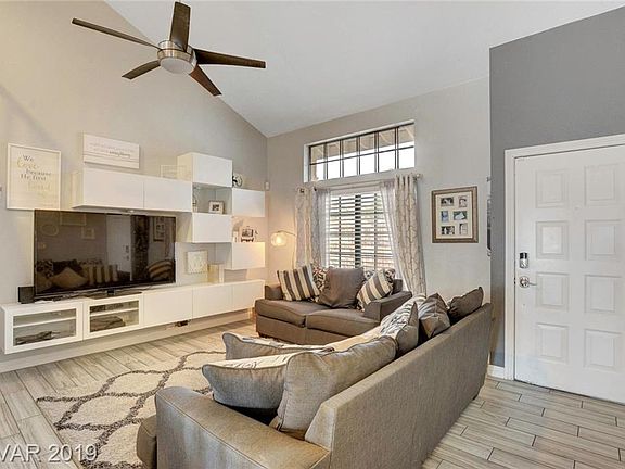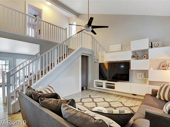 This re-designed 2 story home with a large private pool invites fun in the sun and great entertainment space. With 3 bedrooms, 2 and half baths, 2 separate living spaces, tile flooring, modern paint, and stylish finishes. This Henderson home is located near shopping and the 215 freeway!