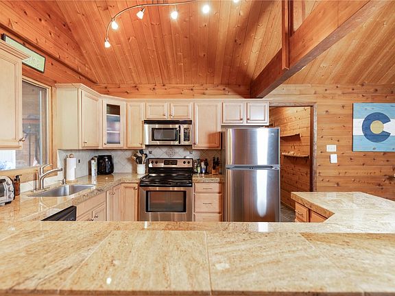 Escape to this charming mountain retreat nestled in the highly sought-after Peak 7 neighborhood. This cozy cabin blends rustic elegance with modern updates, featuring a generous great room with soaring ceilings and a stunning floor-to-ceiling rock fireplace that anchors the space with warmth and character.