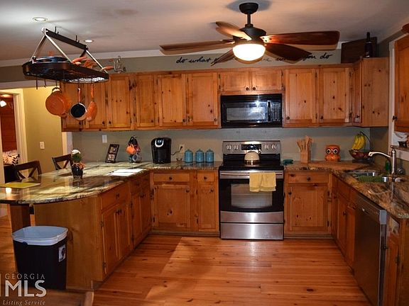 Waterfront log home on approx. 1.6 acre with 3 bedrooms and 2 full baths on main level. Finished basement with 2 bedrooms & 1 full bath. Many upgrades like ceiling fans, light fixtures, cabinet door knobs, doors locks throughout the house. Newer stainless steel appliances, granite kitchen counter, enclosed porch with 2 fabulous views of 2 lakes. Quiet country setting! Great home for entertainment! Ready to move-in ! Close to Chattahoochee Bend State Park.
