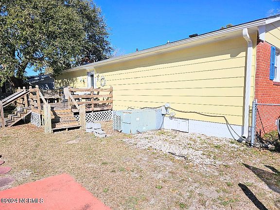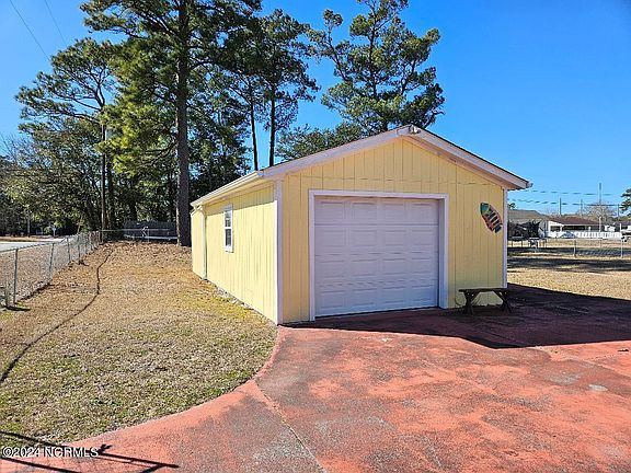Enjoy coastal living in this prime location of Old Cape Carteret. Just a few blocks from Bogue Sound, town boat ramp, parks, and dock. Imagine spending your days on the beautiful Emerald Isle Beaches. Home is located on a beautiful corner lot with detached wired garage/workshop. Fenced in back yard with ample parking for all your toys. Home boasts large living, kitchen, and dining areas. Do some updating and make this home your dream.