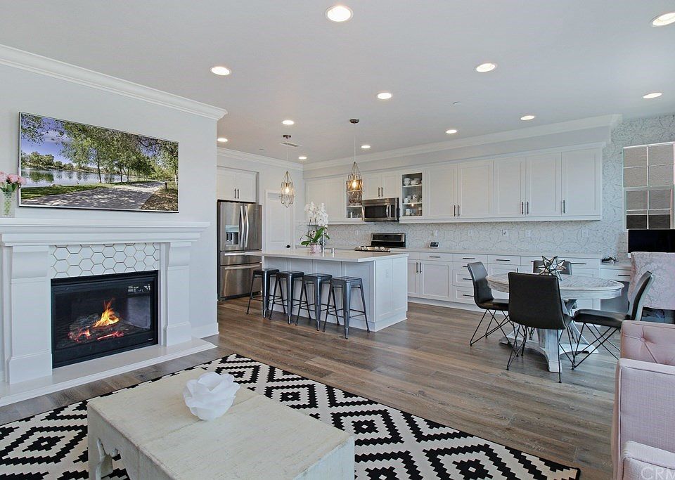 You won't find another like it! The most tastefully upgraded VIEW home in the intimate neighborhood of Aria in Rancho Mission Viejo. Gorgeous wood look laminate floors throughout the entire main floor draw you in through the front door where you are also greeted by a beautiful wall adorned with wood paneling from floor to ceiling. Step into the stunning kitchen with white shaker cabinetry that extends into the dining nook, a large island/breakfast bar illuminated with pendant lighting, quartz countertops, mosaic tile backsplash, and Whirlpool stainless steel appliances. You have the option of relaxing in the family room which features a fireplace with a decorative wood mantle and hexagon accent tiles or step outside to your private backyard with views of the rolling hills, patio & synthetic turf and a built-in fireplace. The main floor also features a bedroom and a full bathroom with white shaker cabinetry, quartz countertop, marble herringbone backsplash, & wainscoting wall feature. You won't miss the wood planked wall feature as you make your way upstairs to the master suite where you will find a wood planked ceiling, an entire wall featuring wood paneling and a luxurious master bathroom featuring white shaker vanity with dual sinks, quartz countertop, exquisite tile flooring, & limestone wall feature. Additional upstairs rooms include a loft & 2 secondary bedrooms with Jack and Jill bathroom. Come see for yourself all the upgrades that this home has to offer.