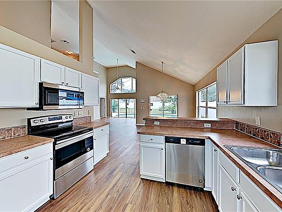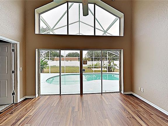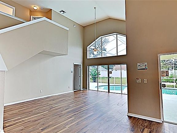 Gorgeous 4 bedroom, 3.5 bathroom pool home located in small community very close to I-4 and Disney parks and other attractions. Home is updated with a re-surfaced pool, fresh interior paint, new flooring (vinyl plank and carpet), and new stainless steel range, microwave, and dishwasher. Relax and Soak up the sun in the screened-in pool overlooking the large backyard. Full bathroom outside in pool area. Open floor plan including soaring ceilings and large windows with tons of natural light. Downstairs master boasts walk-in closet, and en-suite bathroom with corner shower, separate soaking tub, and dual vanities.. Upstairs you will find 3 guest bedrooms and a full bath. Stop in and view today. **Seller will offer $3k CC with offer**