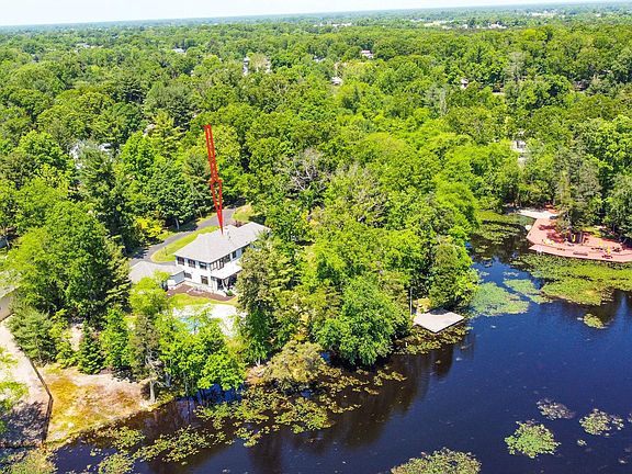 Welcome to your peaceful lakefront oasis. This thoughtfully designed and meticulously maintained 4 bedroom, 3 bathroom, lakefront home is situated on an oversized 1.65 lot. The home has an abundant amount of interior living space. The first level has a cozy, custom designed family room with gas fireplace. The handcrafted solid walnut library, doubles as a fourth bedroom and connects to a full bath and a large custom pantry. The handcrafted kitchen features solid walnut cabinetry with built-in Thermador refrigerator, six burner gas cooktop, two ovens, Carrera marble counter tops and a hand-made walnut kitchen island. Stunning dining room area with amazing natural light overlooks the beautiful pool area with sweeping lake views. The large glass doors in the dining area lead out to a covered porch with amazing views of the lake and pool. The second floor is highlighted by a primary suite with doors leading to the rear sundeck which overlooks the lake and pool, a large walk-in closet and a full Carrera marble bath with double vanity. Two more bedrooms with stunning lake views, a full hall bath and laundry room complete this floor. The 3 upstairs bedrooms are all custom designed with solid oak wood floors, customized closets and solid wood interior doors throughout. Finished basement with plenty of storage includes a custom-designed wine cellar, seating area and bilco doors for exterior access. The outdoor space is perfect for entertaining with its heated, saltwater pool, attached jacuzzi and beautiful stone waterfall. The pool area features natural bluestone decking, a grilling area and ample space for lounge chairs. Large dock (new) for fishing and swimming. Make an appointment today to truly appreciate all this stunning home has to offer. Other Features include: Full-house generator. Basketball and pickle ball court. Attached 2 car garage. Shed. New dock. Lake stocked twice a year. Fishing poles, canoe and two kayaks. Full home water softening system with reverse-osmosis drinking water purification system.
