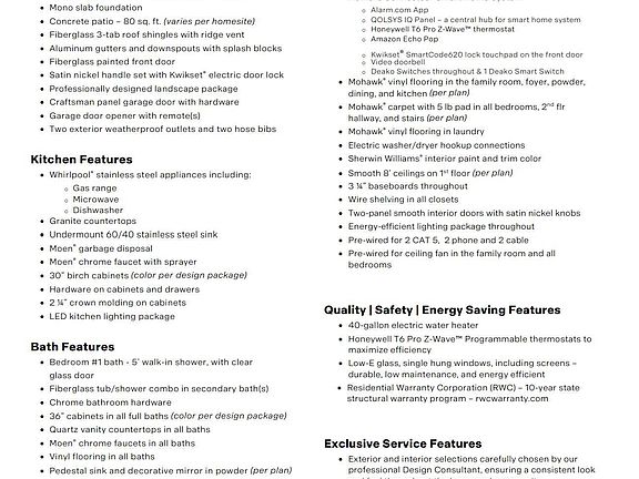 Quality materials and workmanship throughout, with superior attention to detail, plus a 1-year builder's warranty and 10-year structural warranty. Your new home also includes our smart home technology package! The Smart Home is equipped with technology that includes: a Video doorbell, Amazon Echo Pop, Kwikset Smart Code door lock, Smart Switch, a touchscreen control panel, and a Z-Wave programmable thermostat, all accessible through the Alarm App! Photos are representatives.