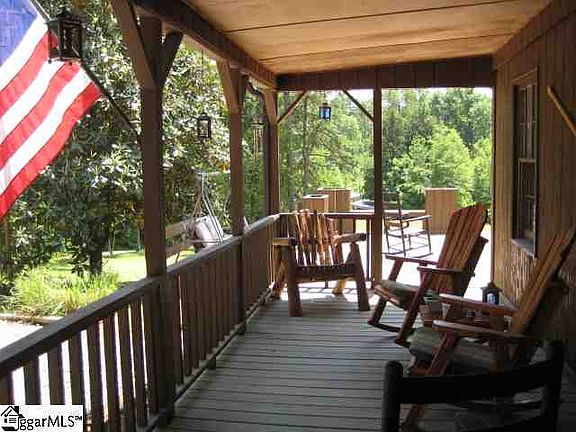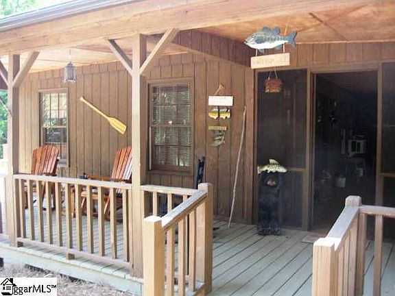 Rustic Cabin CLOSE to Lake Russell. Cedar walls and ceilings hand made and the hart pine wide board floors and stone wall for heater is just the perfect look for this cabin. On about 2 acres of wooded lot and room for a garden. Dual Drive way for boat or camper exit and lots of shade. Three bedrooms, one Master br. with private bath and two front guest bedrooms, or storage or office. Enjoy sleeping with the windows open as the MBR adjoins a screen porch. The screen porch is wired and could easily be converted into a bedroom. Outside living is plentiful here with a cozy front shady porch, side screen porch, huge deck 16x35, another deck with a hot tub and yet another deck with a covered walk way and an outdoor shower. Hand crafted kitchen cabinets, rustic light fixtures and a bar for a quick bite and still room for a small table. There is a 16 x 20 boat storage covered carport with a two part work shop shed with electricity and another carport attached to that. Newer Architectural Roof, Seamless gutters and a Buck Stove free standing gas log heater surrounded by a rock wall for winter months. Sliding glass doors with screens allows entrance from Living Rm to deck and MBR to screen porch and a deck door to the screen porch. Two window units for the few times you need them in mid day. Large Laundry Rm is also a walk in closet and storage. Second bath has a shower with cedar walls and cabinets as well. Close to the lake, on the core line of the lake and there are 5 landings just a few miles apart. The closest one only 3 minutes away. Fisherman delight, Hunters Dream cabin, a Great vacation get-a-way or permanent residence. Less than 30 mins to Anderson. Abbeville is about 20 miles away, Athens is about 1 hour away and Greenville is about one hour away. This is a must see if you looking for privacy and location at Lake Russell.