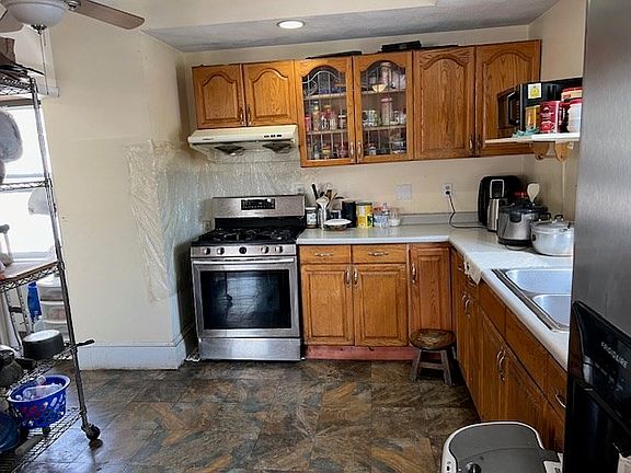 Here is your opportunity to own this large Colonial home in the Highlands area on corner lot. Featuring two cars detached garage with 4 cars tandem off-street parking, Fenced in yard, 5 bedrooms with 2 full bathrooms along with extra room for storage/office in finished walkup attic and could be another full bathroom, storage room in un-finished walkout basement with bulkhead to outside parking lot; Carpet, Laminated, Ceramic, Hardwood floor in a certain living area, Central Heat/Force Hot Air, Window AC in the event that you need to cool you down during hot summer day.