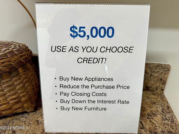Discover this charming 3-bedroom, 2-bathroom residence offering 1,264 heated square feet of comfortable living space, nestled within the desirable Neighborhoods of Holly Ridge. With recent updates that include a new HVAC unit and thermostat, fresh interior paint, stunning new LVP flooring, and updated light fixtures, this home is move-in ready. The exterior welcomes you with a landscaped front yard, raised panel shutters, and a covered front porch. Step inside to a bright living area with vaulted ceilings and abundant natural light. The modern kitchen features contemporary amenities and opens to a private, expansive fenced backyard through a sliding door—perfect for entertaining or enjoying peaceful outdoor moments. The master bedroom is spacious, complete with a ceiling fan, walk-in closet, and an en-suite bathroom featuring a vanity and a combined shower/tub. Two additional bedrooms and a full bathroom are conveniently located on the opposite side of the home. Additional amenities include a laundry closet, linen closet, gutters, and ample garage space. Situated close to shops, restaurants, Camp Lejeune, and the award-winning beaches of Topsail Island, this home offers both convenience and comfort. Schedule your private tour today and experience everything this wonderful property has to offer! Seller is offering a $5,000 use as you choose credit to the buyer, with an acceptable offer. Buy new appliances, reduce the price of the house, pay closing costs, buy down the interest rate or buy some new furniture. The choice is yours!