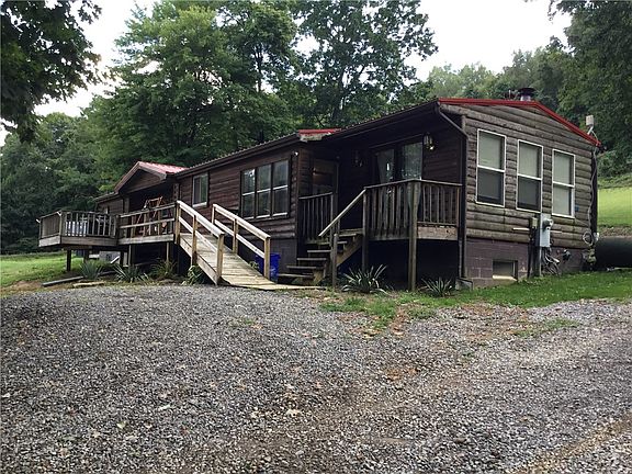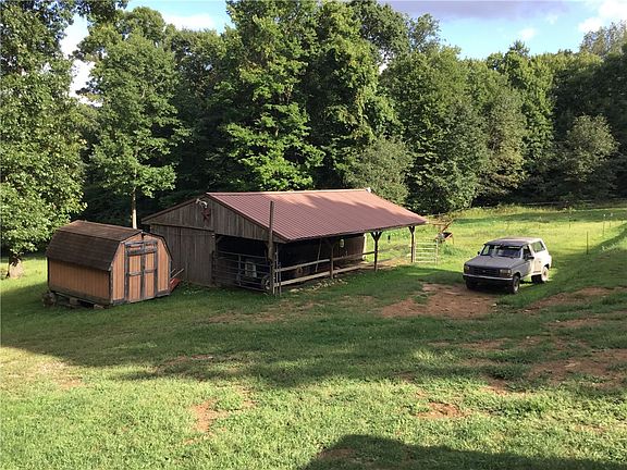 Call it home, or make it your home away from home. Spacious 3 bedroom, 2 bath, doublewide on a full basement situated on a secluded private setting where the trees separate you from just a few neighbors. Relax on your front porch & admire all the nature around you. Property is fenced and ideal for horses or animals and features a three stall barn with water & electric and nearby shed for tack & feed , 24' x 84' garage with workshop-heat-electric-concrete floors-shelving-cabinets-& workbenches, 40'x8'x8 1/2' vented storage container good for storing hay-atv, side by side-etc..., additional storage shed near garage has water ran to it & can be used for additional barn or storage. Includes driveway alarm system with receiver for both the house and garage.