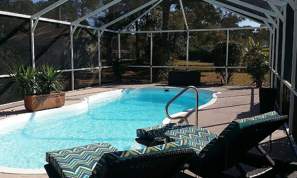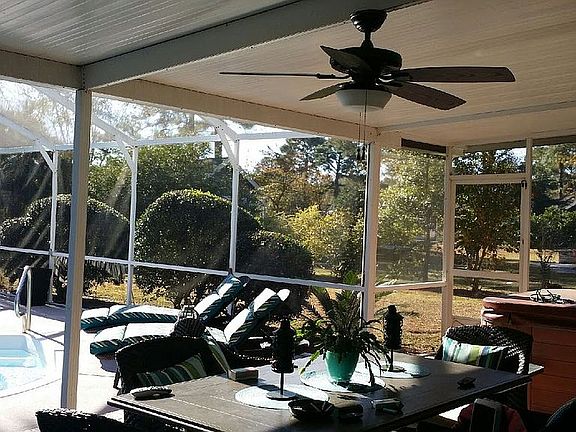 Professionally redecorated 2016!! Exciting and fresh!! On a cul-de-sac with .65 acres overlooking the lake. Low-maintenance in ground Alaglass Baron fiberglass pool surrounded by fully-screened lanai; 6-person hot tub; brick patio, fire pit, private dock, 4Br + office which could be a 5th bedroom, 2.5Ba, 3 car garage, den, kitchen with granite counters and under-cabinet lighting; hardwood floors; gas fireplace; huge recreation room with billiard table (which stays). Hardieplank, architectural shingles + copper roof; double pane insulated windows, 6" external walls with tremendous insulation; concrete driveway; brand new energy efficient HVAC system, brand new energy efficient pool pump; lawn is irrigated by well water - not expensive city water; huge detached & electrified storage/hobby shed; two attics are walk-in attics and the third is accessed by pull down stairs. I can almost guarantee that you do not own enough stuff to ever even think about using the third attic. Neighborhood Description Very convenient to everything due to two entrances on Bluffton Parkway. One loop around the neighborhood is roughly 5 kilometers.