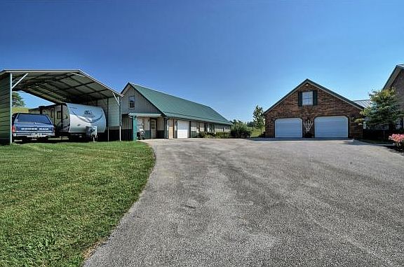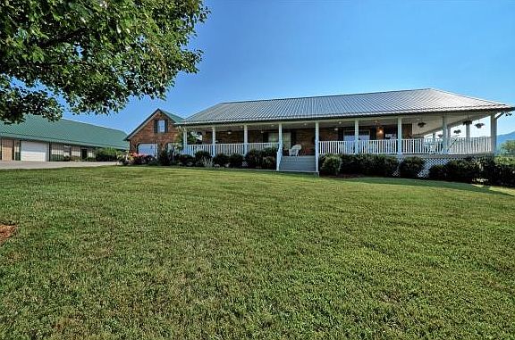 Breathtaking views of the mountains. Brick ranch is a peaceful private oasis that you will want to see. The gorgeous property has rolling hills that stretch all the way to Cherokee road & runs down both sides of a peaceful creek. As you walk up the tastefully landscaped sidewalk, you will notice the large wrap around porch. As you enter, you will be greeted with beautiful hardwood floors into an open living & dining room area. The living room features a stone gas fireplace & lots of natural light. As you enter the kitchen, you will see the beautiful new granite counter tops, center island with a built in cook top stove, and 4 chair breakfast bar. The main level has the master suite with an attached master bath & walk-in closet, as well as two additional bedroom, two full bathrooms, & laundry. Above the attached two car garage you will find a fully furnished bonus room which could be an additional bedroom or rec/playroom. Geothermal heat is just one more incredible feature of this home!!! The back of the home continues with additional deck space with mountain views and a 33 x 66 detached building with a single car garage. The detached building was designed to be a 2 bedroom 1 bath mother in law suite or business space. There is a 12ft metal carport for a camper/rv and additional metal storage barn. This is truly a one of a kind property that you can make a reality!