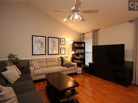 Beautiful 3 Bedroom, 2 bath home offers a spacious Family Room with High Ceilings and Hardwood Floors throughout. Opens to a Bright Kitchen with spacious Eat-In Dining Area. Kitchen boasts a pantry, black appliances and bar area for extra seating. Master Suite w/walk-in closet, double vanities and Garden Tub w/Palladium Window. Great back yard with nice deck for entertaining; the fenced yard is completely private as it backs up to the Harbison natural area! Enjoy all the amenities of Harbison -- pool, tennis courts, walking trails, rec center, etc -- in this convenient location!