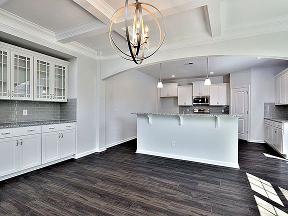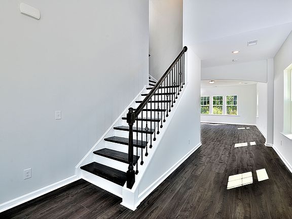 The Warwick is a two-story home with five bedrooms and three full baths, including a guest suite downstairs, is located in a cul-de-sac! Enjoy a private backyard, view of trees, a pond and a large 10x32 patio! The grand two-story foyer features a gorgeous staircase with metal spindles and wood stairs. The dining room has a coffered ceiling and butler's pantry for serving your guests! The kitchen features white shaker style cabinets, gray granite, two islands including a breakfast bar island, a large prep island, and a double oven range! The kitchen is open to the dining room and spacious family room. The upstairs master bedroom includes a tiled separate tub and shower and a large his and hers closet. Three secondary bedrooms, all with walk-in closets, are also located upstairs along with a huge, open loft, perfect for a game room or theater room. The laundry room is upstairs for convenience. Fully sodded and irrigated yard. Ready March/April 2020!