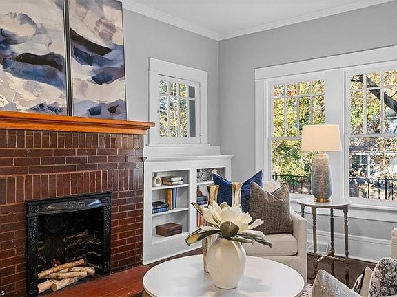 Classic 1920s charm meets flexibility at 118 Bruce Street near “The Corner” at Elam & Walker. This brick bungalow with covered front porch has been freshly painted and renovated. Features a brick fireplace, refinished gleaming hardwoods, bright office/flex space, and updated kitchen with storage. 2 large bedrooms, one with access door to outside. Laundry/mudroom porch not included in square footage. Roofs on home, studio, and shed replaced Nov 2025; HVAC 2017. Detached 345 SF studio apartment with kitchenette, bath, and window-unit HVAC—ideal for guest space, creative use, or income potential (verify city guidelines). Fenced backyard, storage shed, pull down attic and walkable location near shops, dining, and UNCG. Lindley Park Adjacent • 0.7 mi to Coffeeology • 0.8 mi to UNCG • 0.8 mi to Harris Teeter.