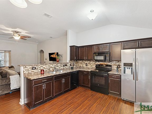 This 3-bedroom, 2-bathroom home is waiting for you! It boasts a charming covered front porch and a split/open floor plan that includes a spacious great room. The kitchen features a convenient breakfast bar and a glass sliding door leading to a private, fenced backyard. The owner's suite offers a walk-in closet and a private bathroom complete with double vanities, a garden tub with a shower, and a separate water closet. On the opposite side of the home, you'll find two additional bedrooms, a hall/guest bathroom, and a linen closet. Additionally, there is a full laundry room for your convenience. This property features a two-car garage equipped with an automatic garage door opener. Pull-down stairs provide access to a spray-foamed attic. As if that weren't enough, you'll surely appreciate the community playground, and Southbend kids have the advantage of attending the highly sought-after South Effingham Schools.