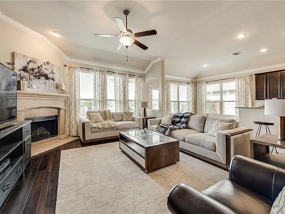 Beautiful Lennar 4 bed, 3.5 bath, formal dining, covered patio. Brick and stone exterior; stainless GE appliances including fridge; crown molding throughout; Energy Star Certified, 2in blinds included, Kitchen includes granite countertops and ceramic tile in entry and all wet areas,wood flooring in den. Radiant barrier, Full gutters; 15 SEER HVAC and plenty of extras. School bus stop is 3 doors down. This house is truly a gem, with the community center across the street for swimming, cooking out or just enjoying a family gathering. Washer, Dryer and Refrigerator will convey with the home if needed.