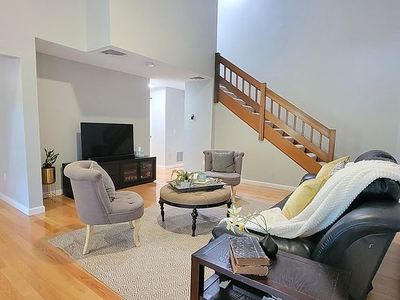 You absolutely can NOT miss this awesome townhome style condominium located in a beautiful community close to shopping, highway access, train station, and more! There's a playground and tennis and basketball courts on the premises! Nice cozy yard space with a patio too! The living room is huge with cathedral ceilings and is wide open to the dining room, both with gleaming hardwood floors. The kitchen has granite counters and stainless steel appliances. A half bath and laundry room round out the 1st floor. The 2nd level has two BIG bedrooms both with their very own full bathroom! The entire home was freshly painted and has brand new carpeting in the bedrooms and staircase! Central air, gas heat and cooking, one car garage, town water and town sewer.