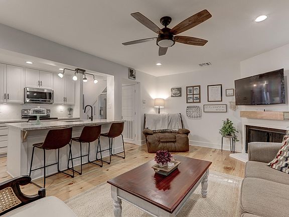 Stunning remodel, downtown charm & under 1 mile to UL. Gorgeous new cypress floors throughout & the open living/kitchen has a wood burning fireplace. All new custom cabinetry, quartz counters, subway tile backsplash, & stainless appliances that stay. Sliding doors open to a covered patio surrounded by open fields. Downstairs bedroom could be used as an office. Upstairs are 2 large bedrooms, 1 with a vaulted ceiling. All 3 bedrooms have their own bathroom & all plumbing fixtures are new. There is a jacuzzi, 2 tiled walk-in showers & custom cypress vanities. The home has new electrical, lights & fans. The laundry area upstairs hides behind custom barn doors. New windows, 2 central units, security system, no flooding & flood insurance not required. Home qualifies for 100% Financing & NO PMI
