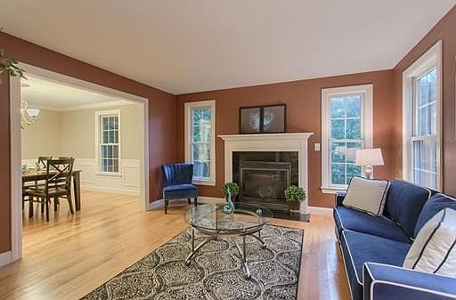 This young, sunlit, open concept 4 bedroom/2.5 bath colonial has it all! Gleaming hardwood, 8???ceilings and oversized windows create effortless flow throughout 1st floor, perfect for entertaining and everyday living. Family room, dining room w/ wainscoting and living room with gas fireplace all lead to a custom granite/cherry kitchen offering breakfast bar, s/s appliances including double oven and beverage fridge. The eat-in area has access to deck overlooking private, landscaped backyard with beautiful stone walls. Half bath and slate floored mudroom complete 1st floor. Upstairs is a full bath, laundry and 4 large bedrooms including master suite with 2 walk-in closets and tile bath. LL offers carpeted bonus room and workshop area. Plenty of room to expand in walk-up dormered attic. Extras include full house generator, 2 zone/2 stage A/C (2018), decorative front door (2018) and newer water heater (2013). Great So.Westford location close to tennis,soccer, playground, golf, and bike path.