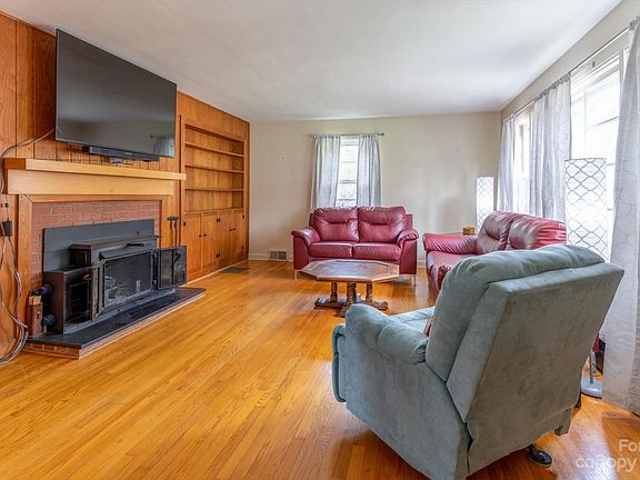 Sweet ranch home on a quiet street with excellent curb appeal. Conveniently located between Sweeten Creek and Hendersonville Rd. in South Asheville, close to Jake Rusher Park. Large living room with wood burning stove, original oak hardwood floors, 3 bed + 1 updated bath on main, new kitchen appliances, repainted upper cabinets, partially finished basement with 3 bonus rooms and laundry. Single car garage is attached by a breezeway that leads into a dreamy park-like backyard. A large, insulated shed with electricity and loft was recently added. Woodworker's dream or ADU conversion possibility!