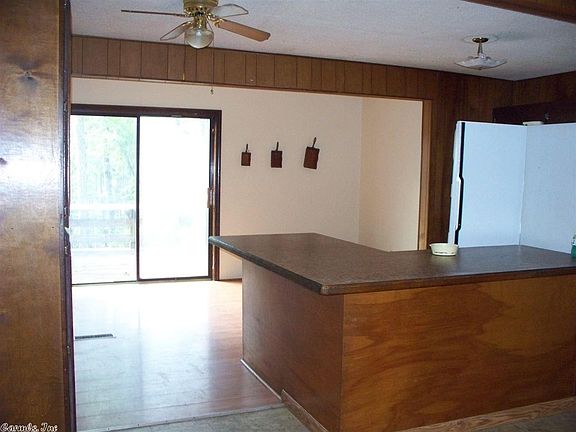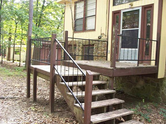 Cute older lake home priced to sell. Has great bones and ample space. Extra parking, nice garage for your lake toys. Upstairs has an open floor plan with large kitchen, open to living and dining and large deck on rear. Two bedrooms and full bath complete the upstairs. Down is a HUGE bedroom, laundry, and half bath. A second large deck off the bedroom which could be a large bonus room / den / of family room. The large lot is just 3 minutes from the Fairfield Bay Marina and Greers Ferry Lake.