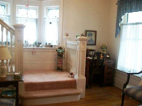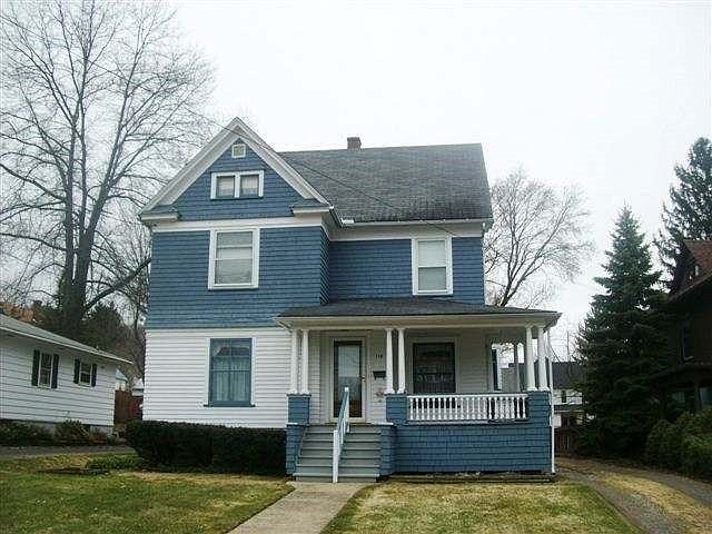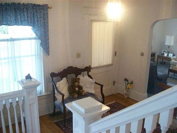 Need more space? This home has it! The spacious living room also has an area that can be used as a formal dining room or to have multiple seating areas. The roomy kitchen has tall cabinets for plenty of storage. There's also a nice breakfast nook with a view of the back yard. The second floor sports four large bedrooms, built-ins for linens and a spacious bathroom in very good condition. The full basement currently has a 1/2 bath, sewing room and laundry room. This home also has some newer windows, a composit front porch and newly painted ceilings. Don't forget about the large garage... one side has a remote garage door and the other two sides have carriage doors. It could be used as a three car garage but currently has one space set up as a work shop with heat. There is a drop down ladder for the second floor storage. To top it all off, this home is on the gas budget at $89.00 per month with the thermostat set at 72 degrees. This is a must see so call today for an appointment.