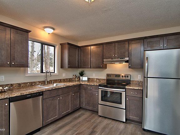 Move in condition AND extremely affordable! The first floor of this beautiful home features a brand new kitchen with gorgeous cabinets and new stainless steel appliances, a spacious living room and dining room combination, laundry room and first floor bedroom and full bathroom. Upstairs you will find an additional 3 bedrooms, full bathroom, large family room with brick fireplace and sliding glass doors which leads to a 2nd story deck. All new flooring and freshly painted throughout. A must see!
