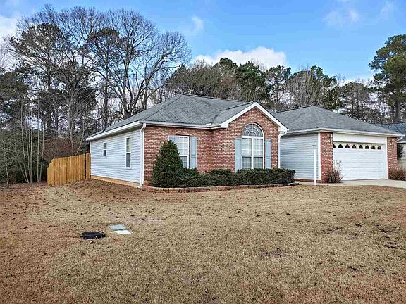 3 Bedroom/2 bath split floor plan has new flooring installed in foyer & open living room area with a gas fireplace & 2" faux blind. Kitchen is open to dining area with a pantry, mounted tv & breakfast bar. Master bedroom has a walk-in closet & bonus room that would be great for a private office, nursery or dressing room. Backyard has a patio and privacy fence with gates on both sides & 10 year stain protection. Lot extends approximately another 65 feet beyond the privacy fence.